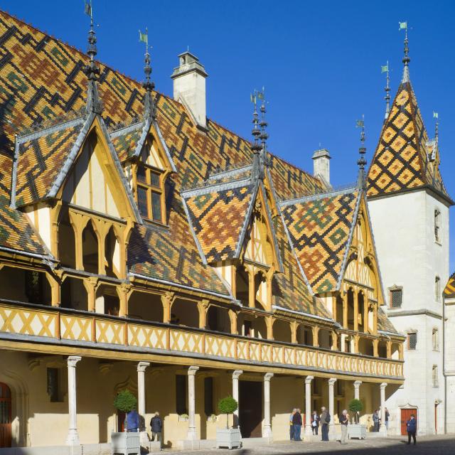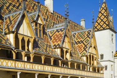 Ravalement des façades en pierre calcaire, sous les célèbres toits polychromes des