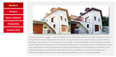 Différentes peintures : Les revêtements plastiques épais ou semi-épais (RPE, RSE), les peintures pliolites, les peintures siloxanes, les peintures acryliques, les peintures minérales, les peintures fongicides.